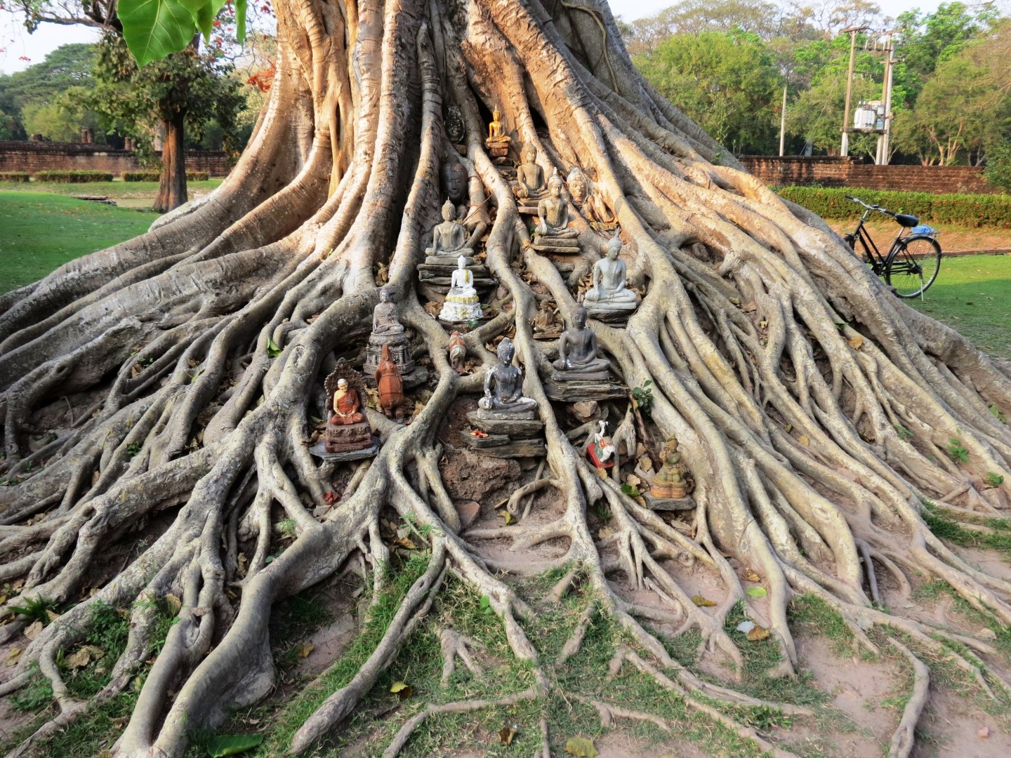 De Thai geloven in Boedha en in geesten, er staat voor elk huis een mini huisje om de geesten gunstig te stemmen en daar wordt ook geofferd. Vele tempels hebben Chinese invloeden met draken en slangen om boze geesten buiten de deur te houden. Er zijn vele ruïnes en tempels vooral in Sukhothai, die dateren uit de 12e eeuw. Sommigen lijken wel wat op Angor-Wat in Cambodja, vertelde de gids.